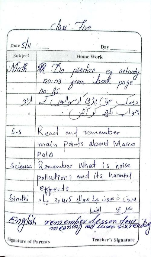 Daily Diary Class Five 5th November 2025