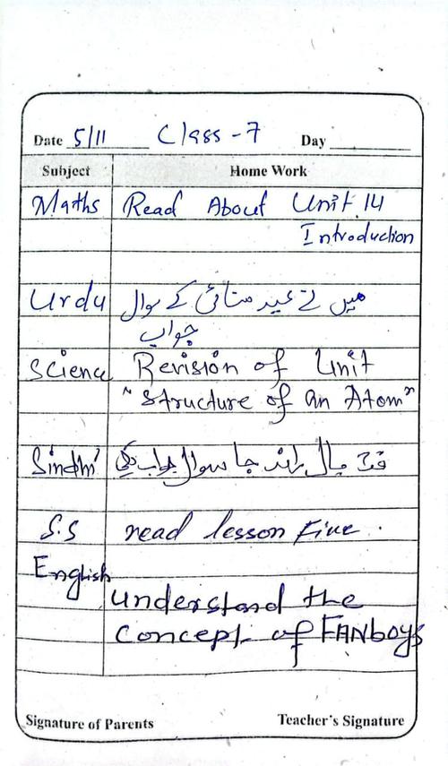Daily Diary Class Seven 5th November 2025