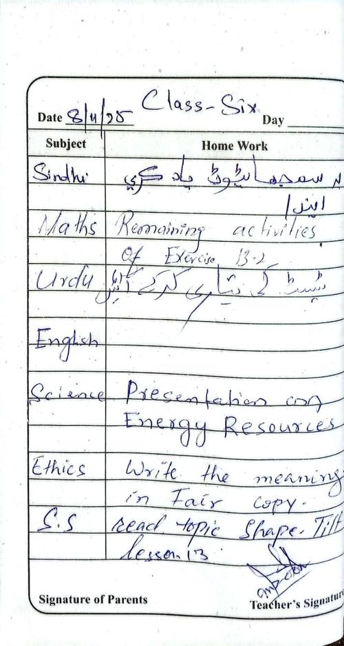 Daily Diary Class Six. 8/11/2025