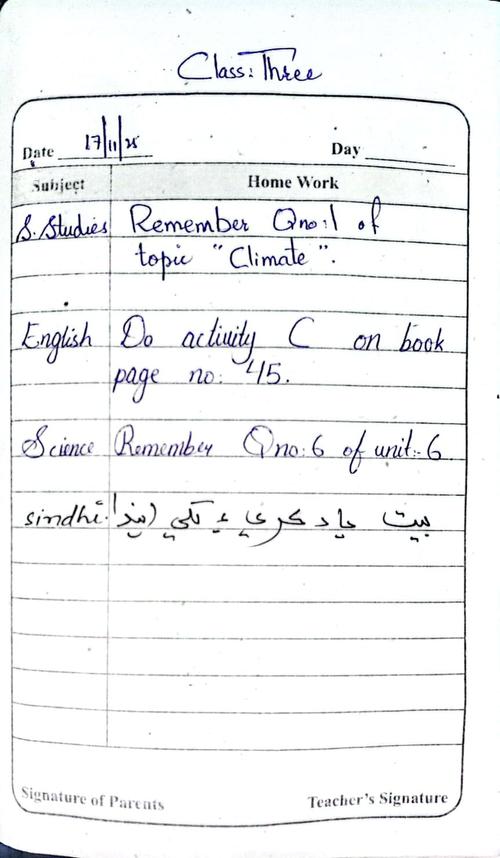 Class 3 Daily Diary 17 November 2025
