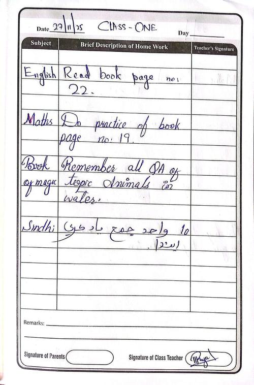 Class 1 Diary 27 November 25