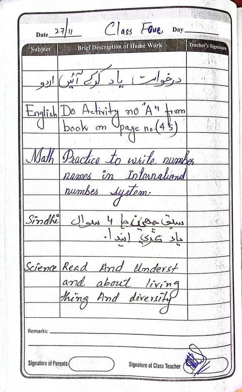 Class 4 Diary 27 November 25