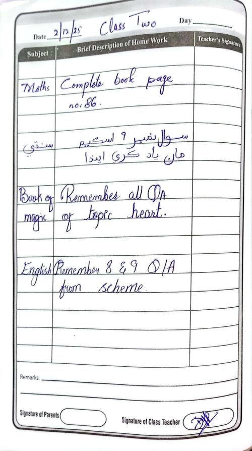 Class 2 Diary 2 December 25