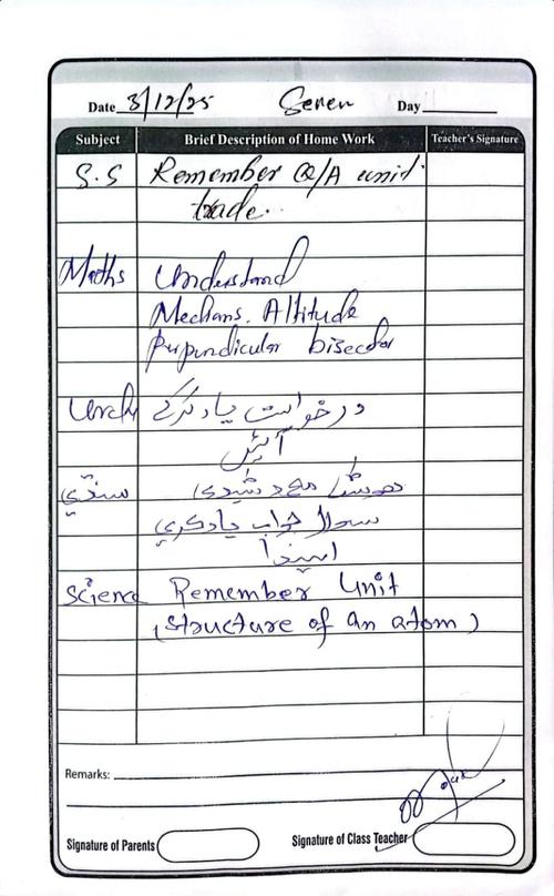 Class 7 Diary 3 December 25