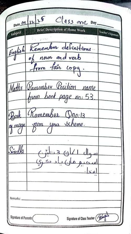 Class 1 Diary 4th December 2025