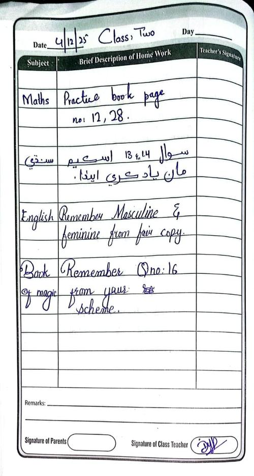 Class 2 Diary 4th December 2025