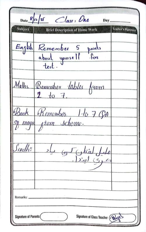 Class 1 Diary 8 December 25