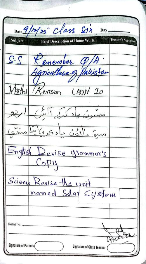 Class 6 Diary 09 December 2025
