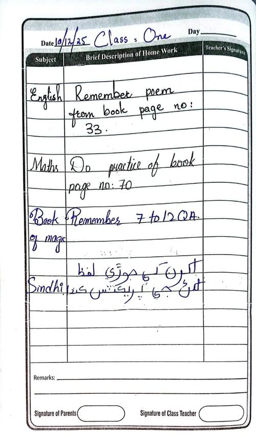 Class 1 Diary 10 December 25