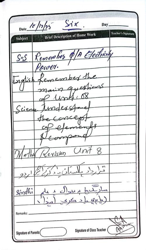 Class 6 Diary 10 December 25