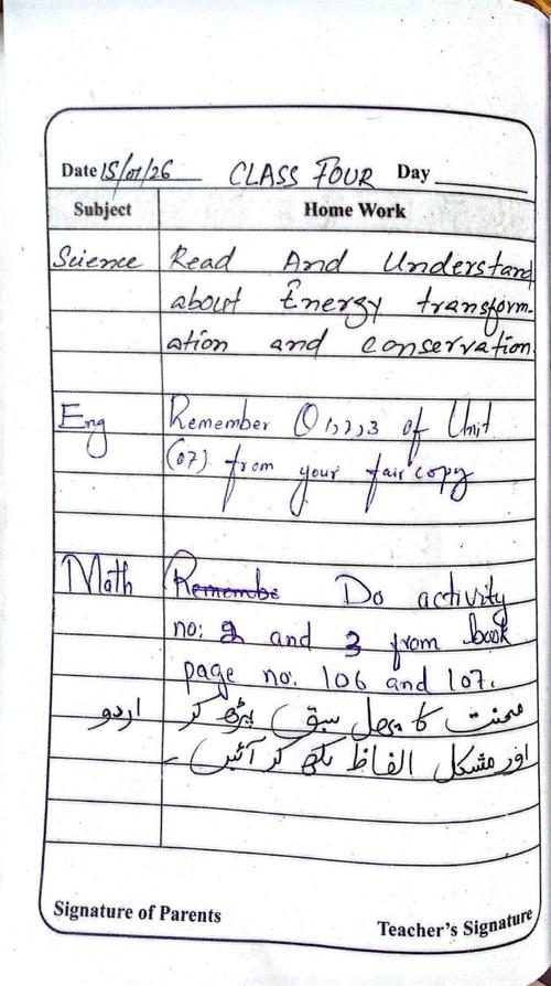 Daily Diary Class 4, 15 January 2026