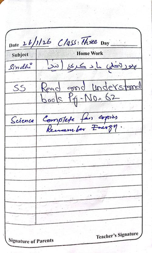 Daily Diary Class 3, 26 January 26