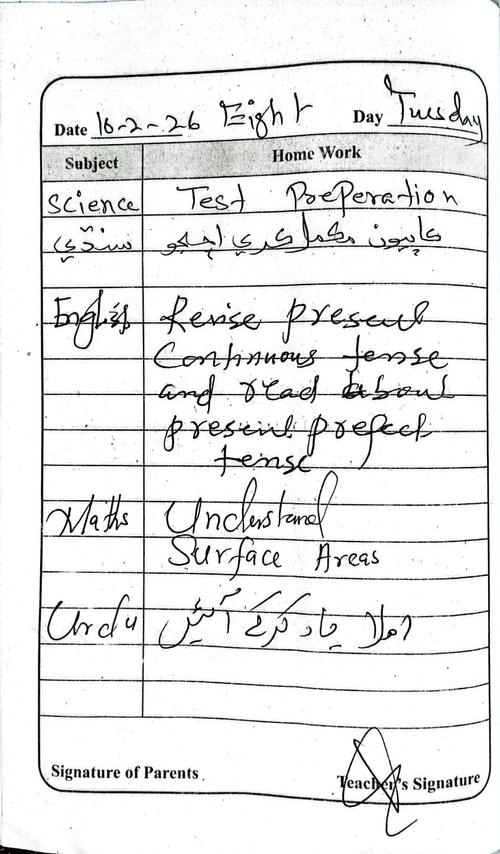Daily Diary Class 8, 10 February 26