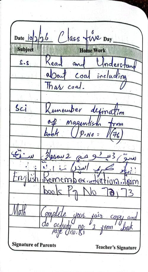 Daily Diary Class 5, 10 February 26