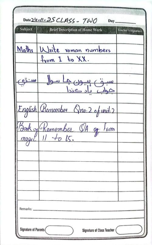 Class 2 Diary 24 November 2025
