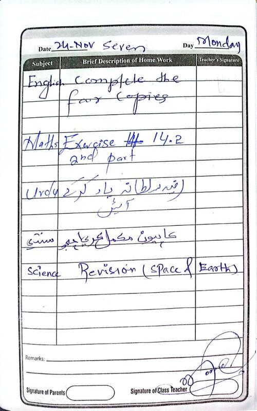 Class 7 Diary 24 November 2025