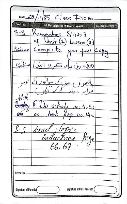 Class 5 Diary 25 November 25