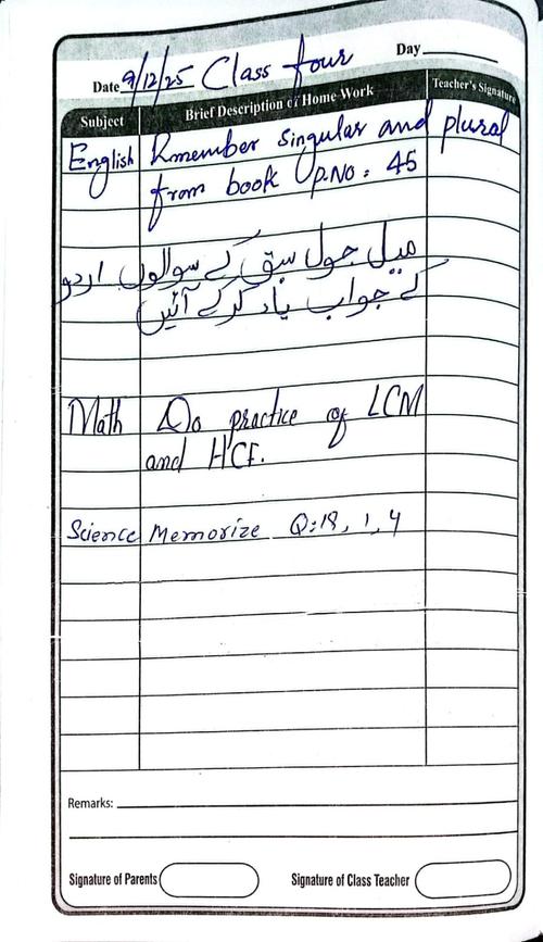 Class 4 Diary 09 December 2025