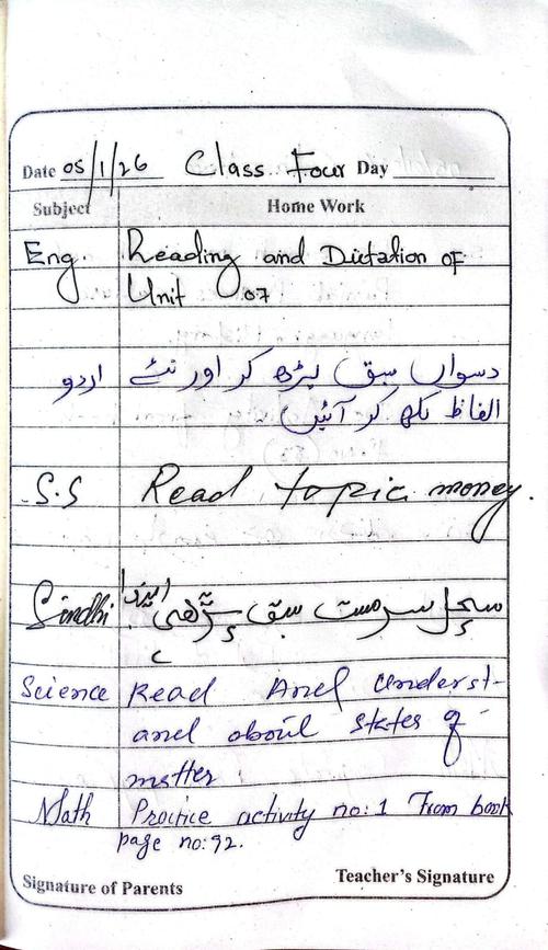 Daily Diary Class Four. 05/01/2026