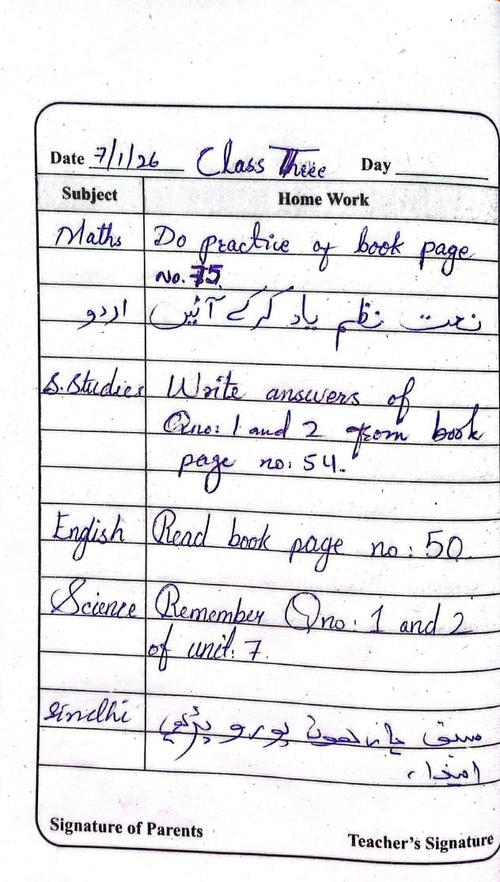 Daily Diary Class 3, 07/01/2026