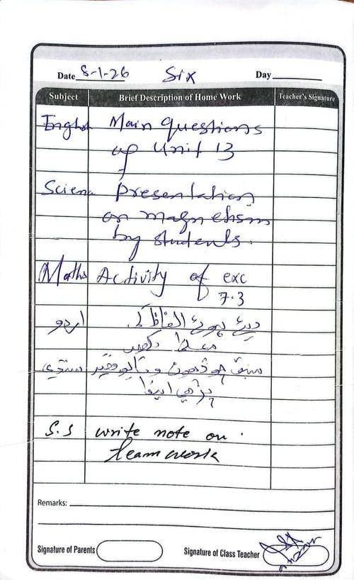 Daily Diary Class 6, 08/01/2026