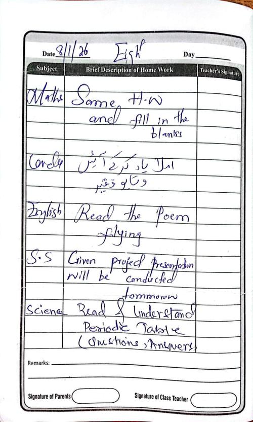 Daily Diary Class 8, 08/01/2026
