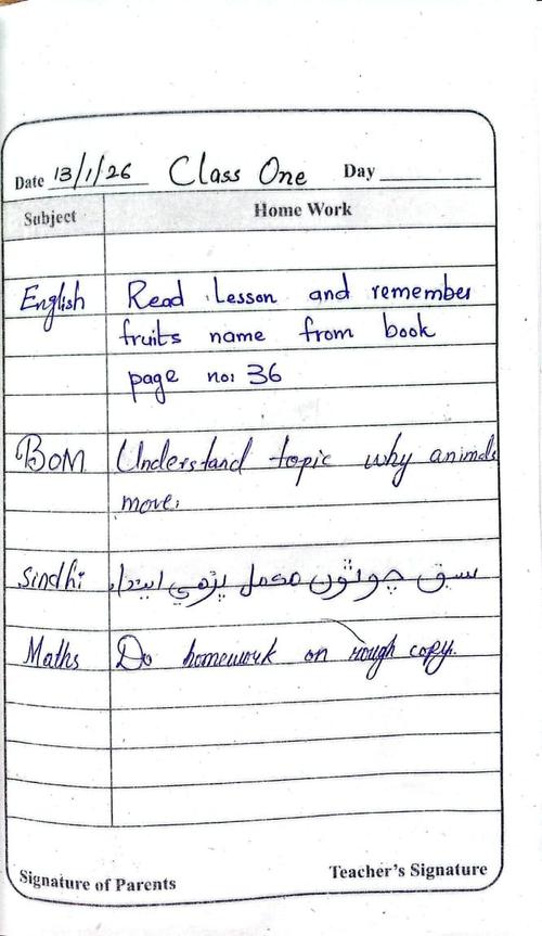 Daily Diary Class 1, 13 January 2026
