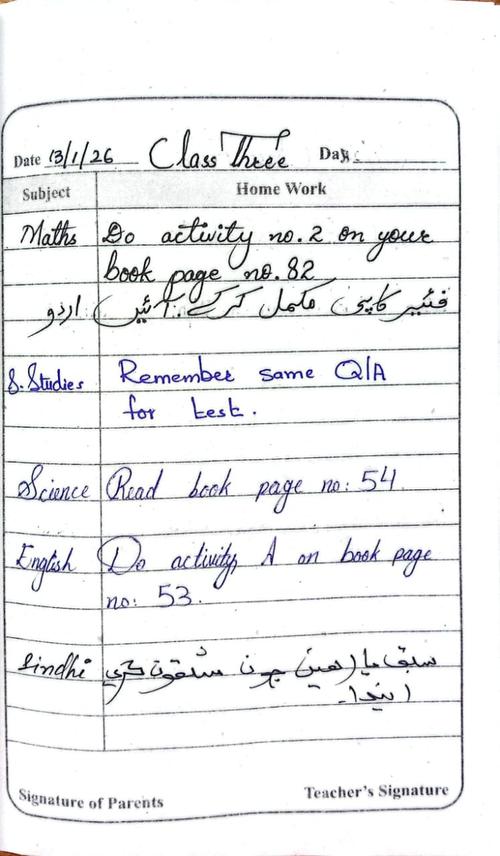 Daily Diary Class 3, 13 January 2026