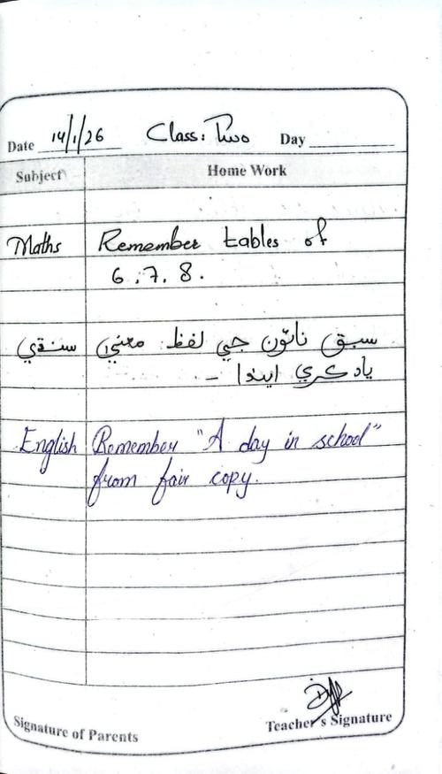 Daily Diary Class 2, 14 January 2026