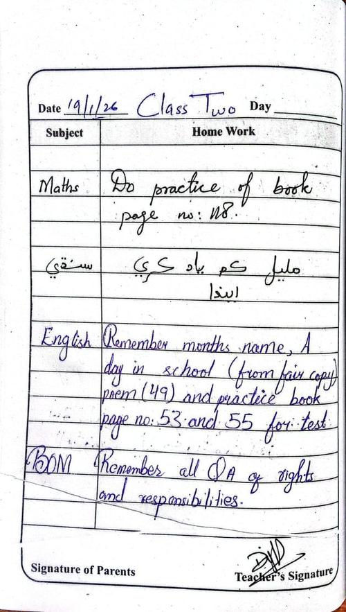 Daily Diary Class 2, 19 January 2026