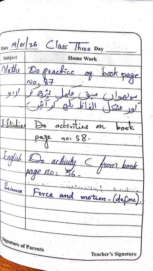 Daily Diary Class 3, 19 January 2026