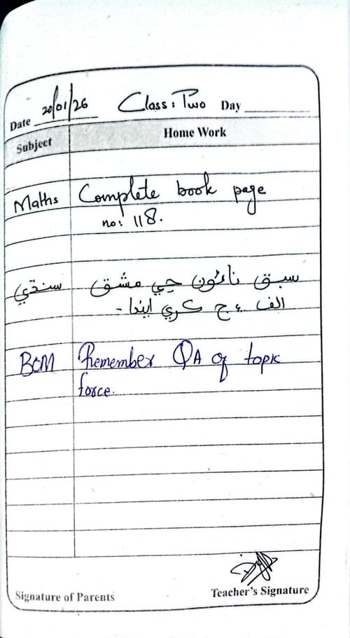 Daily Diary Class 2, 20 January 2026