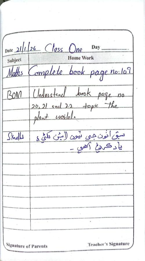 Daily Diary Class 1, 21 January 26