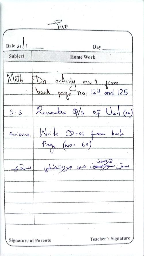 Daily Diary Class 5, 21 January 26