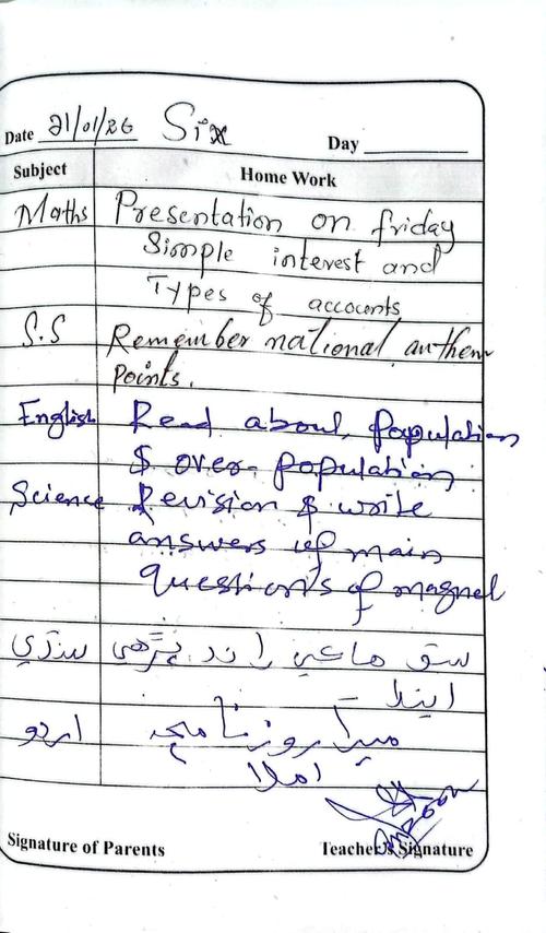 Daily Diary Class 6, 21 January 26