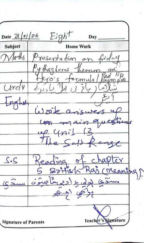 Daily Diary Class 8, 21 January 26