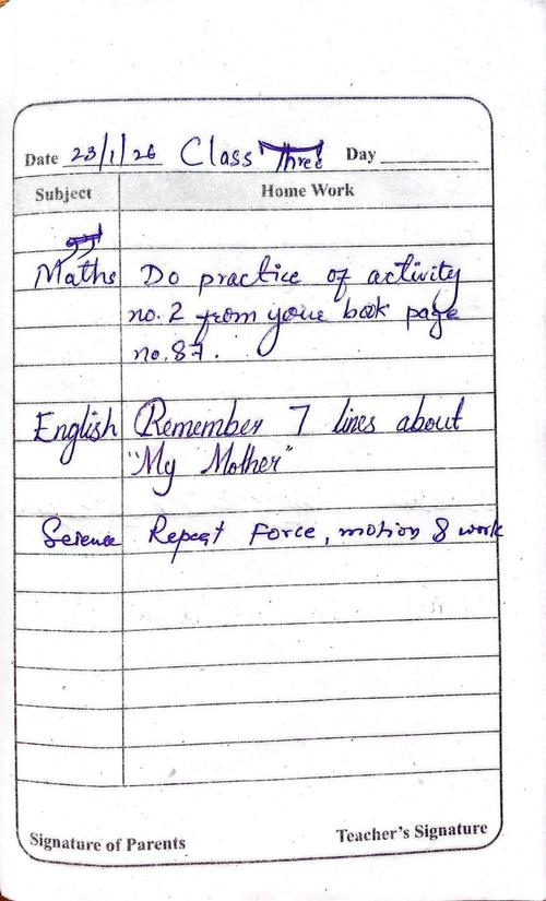 Daily Diary Class 3, 23 January 26