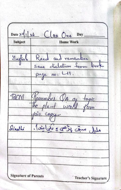 Daily Diary Class 1, 24 January 26