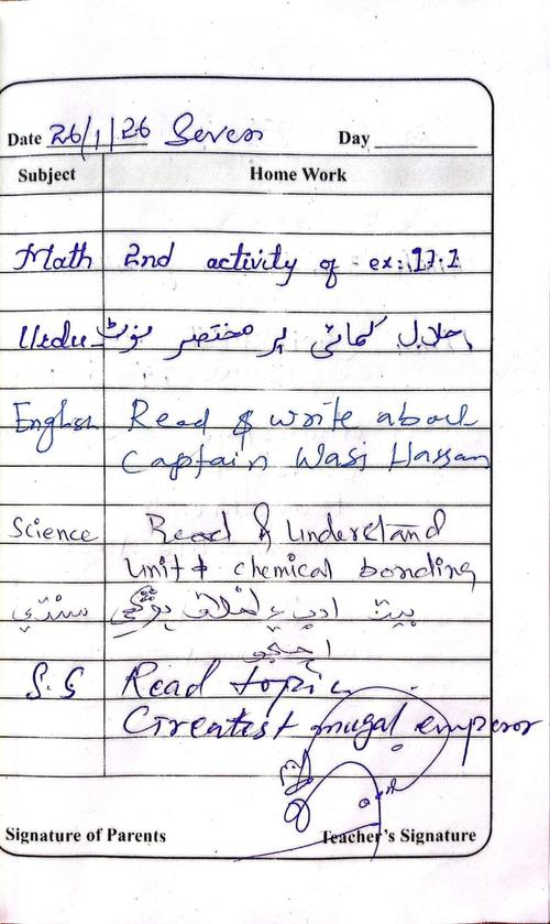 Daily Diary Class 7, 26 January 26