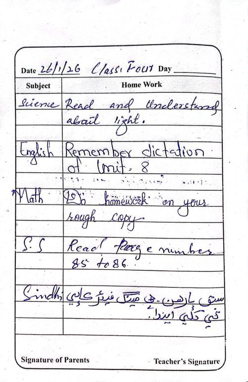 Daily Diary Class 4, 26 January 26