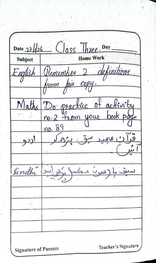 Daily Diary Class 3, 27 January 26