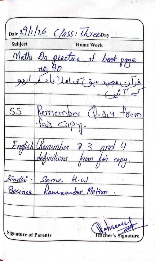Daily Diary Class 3, 29 January 26