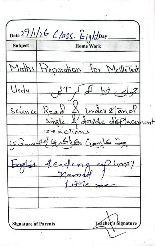 Daily Diary Class 8, 29 January 26