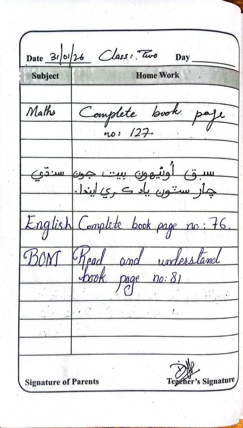 Daily Diary Class 2, 31 January 26
