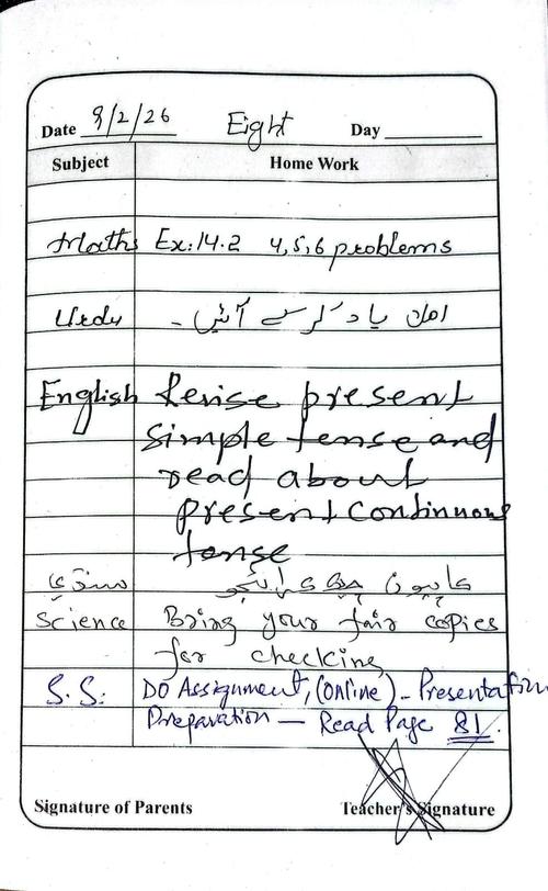 Daily Diary Class 8, 9 February 26