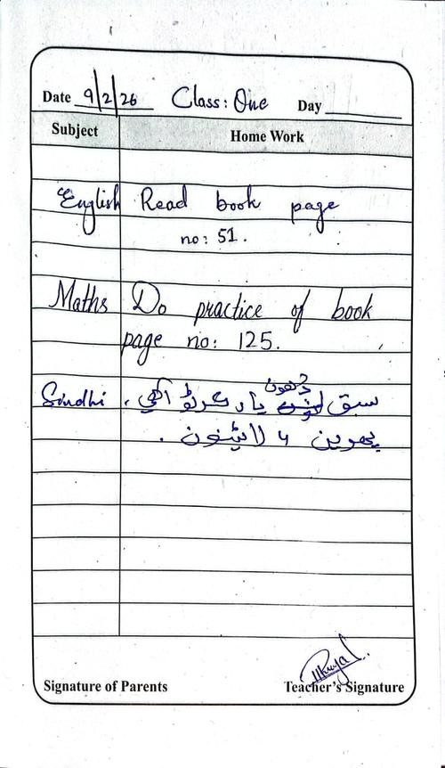 Daily Diary Class 1, 9 February 26