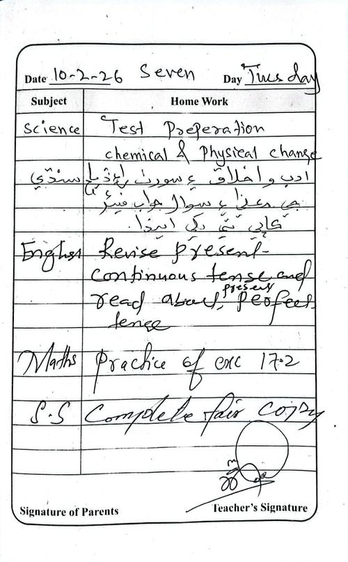 Daily Diary Class 7, 10 February 26