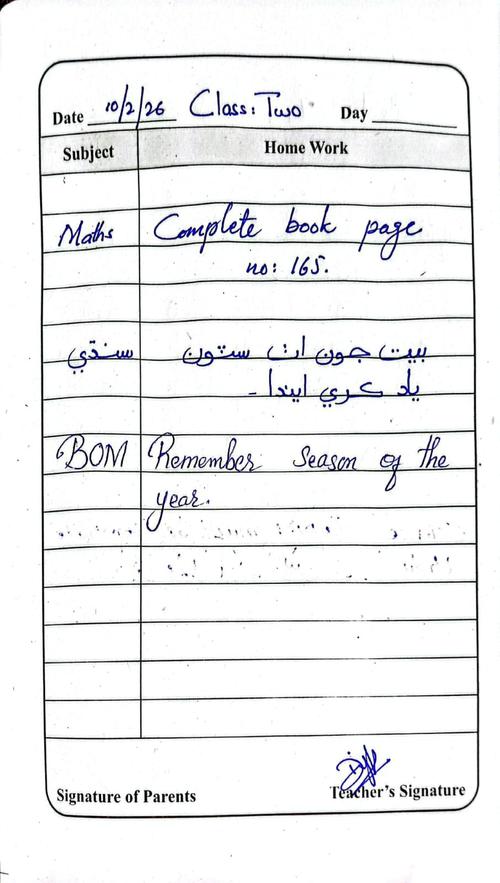 Daily Diary Class 2, 10 February 26