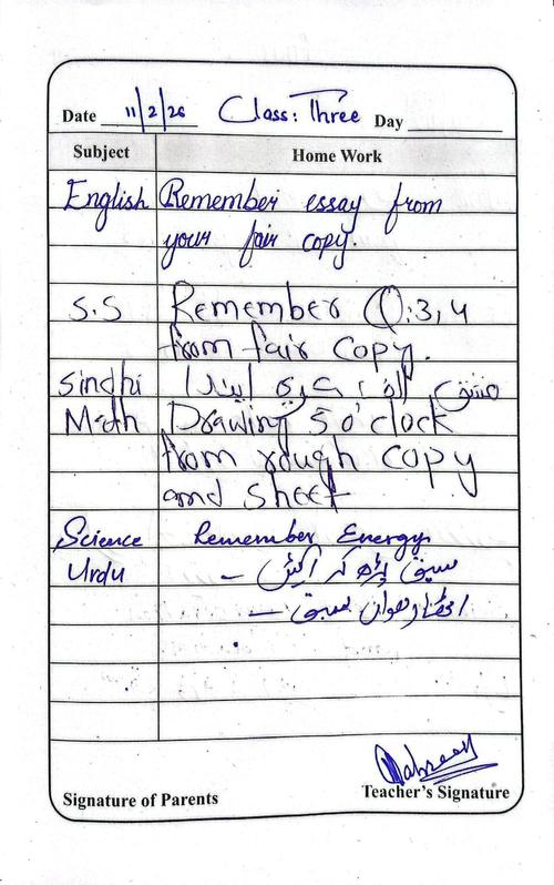 Daily Diary Class 3, 11 February 26