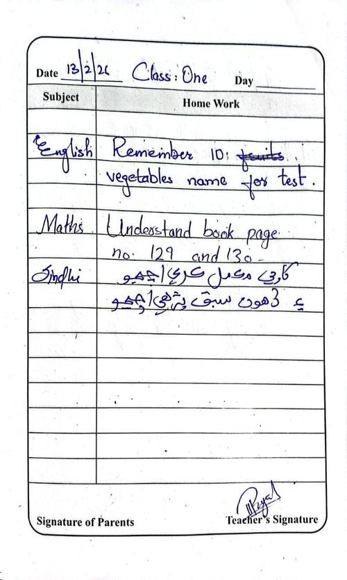 Daily Diary Class 1, 13 February 26